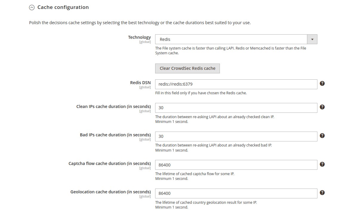 Cache configuration β†’ Bad IPs cache duration (global scope)