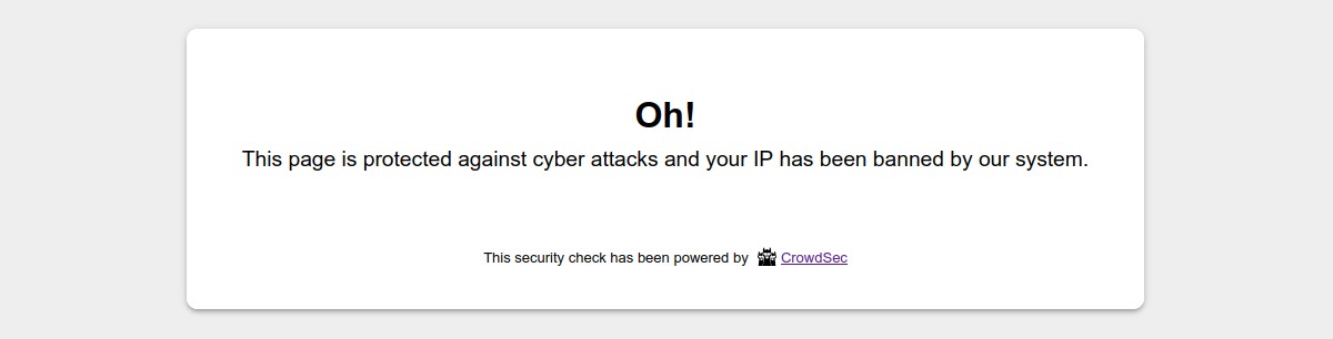 When a user is suspected by CrowdSec to be malevolent, a component would either display a captcha to resolve or simply a page notifying that access is denied. If the user is considered as a clean user, he/she will access the page as normal.