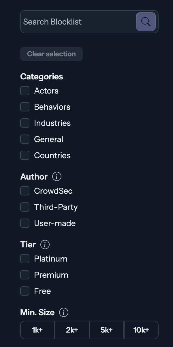 To provide blocklists tailored to each need, CrowdSec has a wide catalog of blocklists, encompassing a variety of threat types and sources. This diversity allows to select and implement blocklists that best match their specific security requirements. The search page in the CrowdSec Console provides a centralized interface to explore, subscribe, and manage blocklists tailored to enhance your organization’s security posture. This page allows to browse all available blocklists, find the ones most relevant to your needs, and activate them to protect your infrastructure.